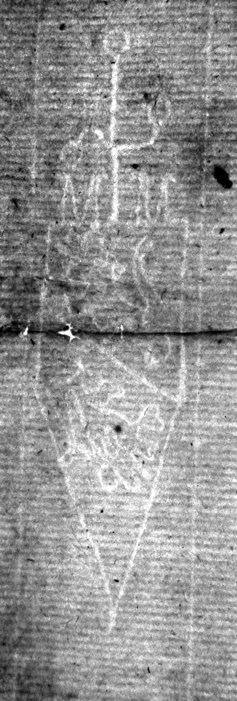 La figure ci contre montre une marque typique de raisin (Format in-12, le sens du pontuseau est vertical, la feuille étant tournée
